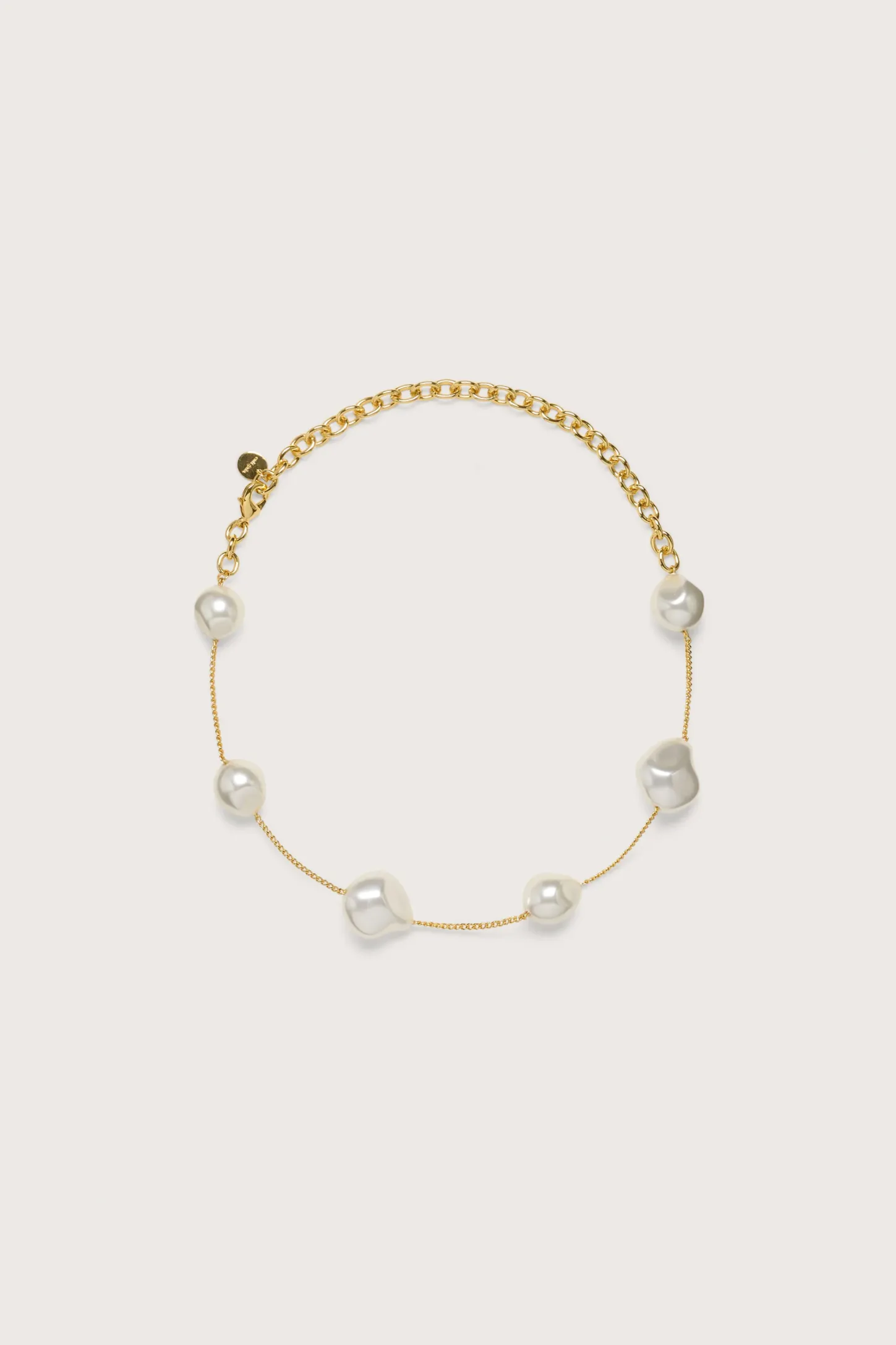 Faux pearls of irregular shape adorn the delicate chain of this choker.