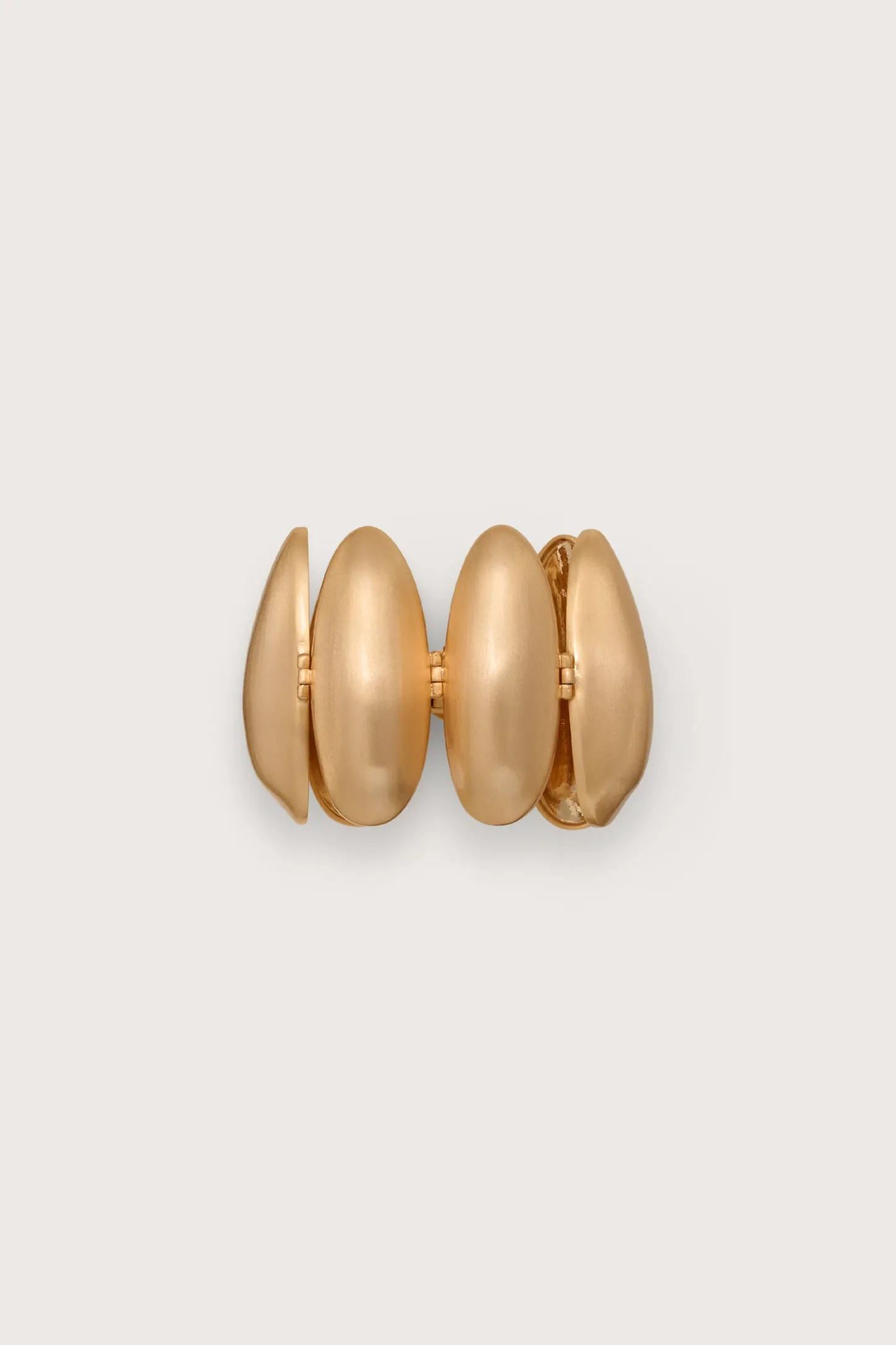 Curved spherical brushed brass shapes connect to form a statement bracelet.