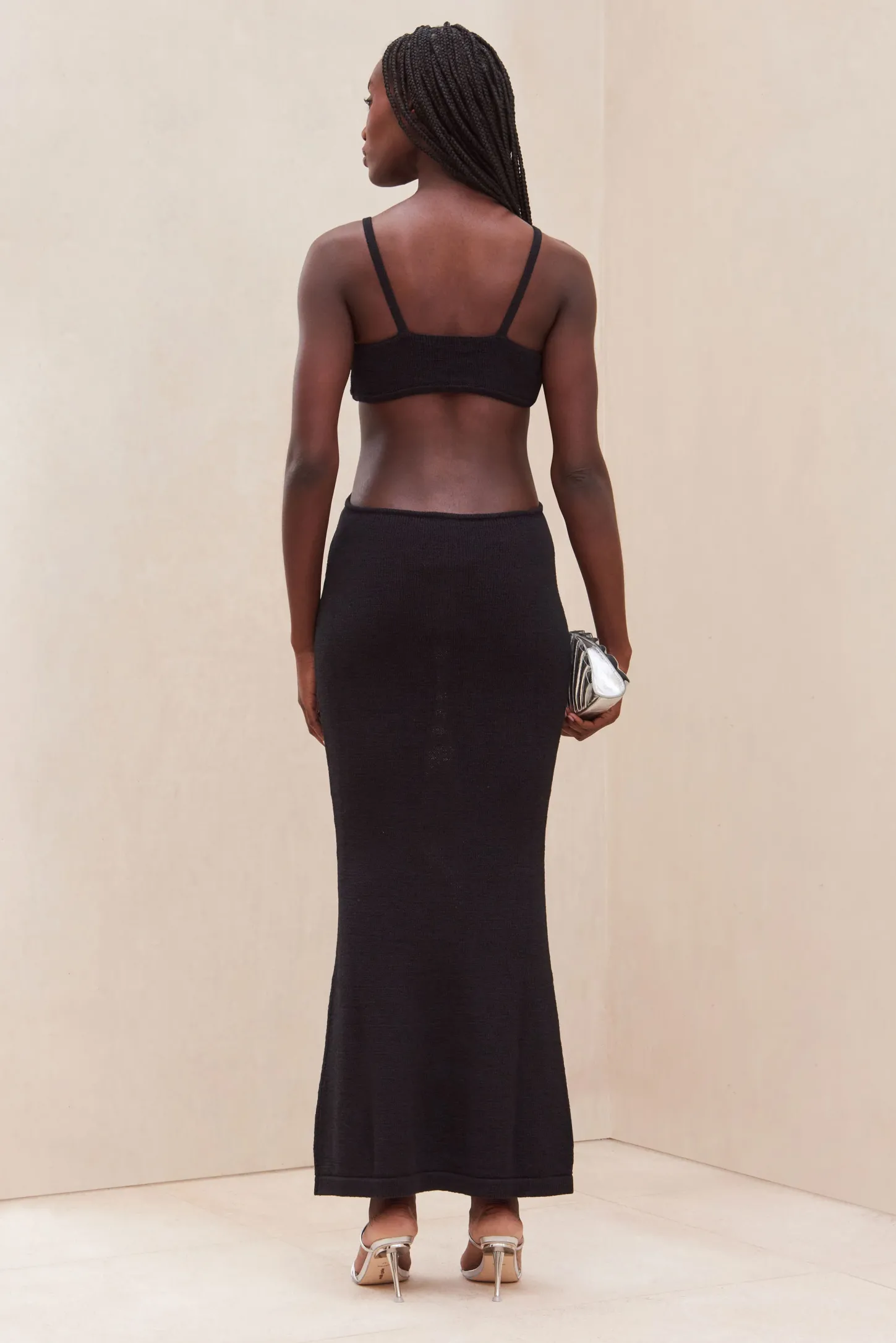 The Serita is back. She is a cutout woven knit maxi dress. Thoughtful cutouts shape your figure, highlighting the small of your waist. Bra silhouette back with a bare all open back. Pair with the Solene Bag and bare feet and you’re ready for a night of dancing on the beach. The dress is worth the hype.