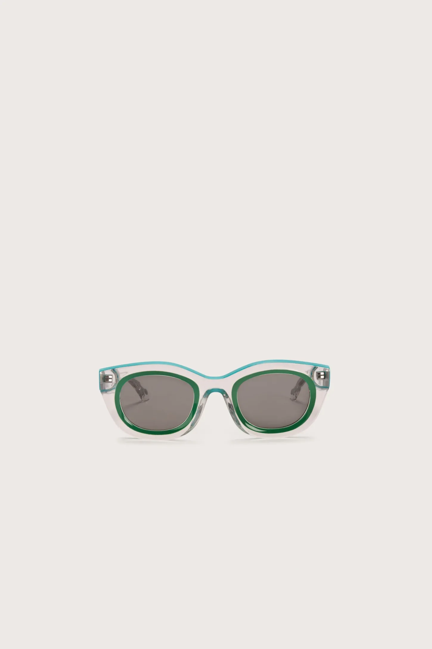 Crafted and colored with delicate precision in Italy, the Lili Sunglasses in Clear feature a unique die-cut seashell identifier in the core of the wire.