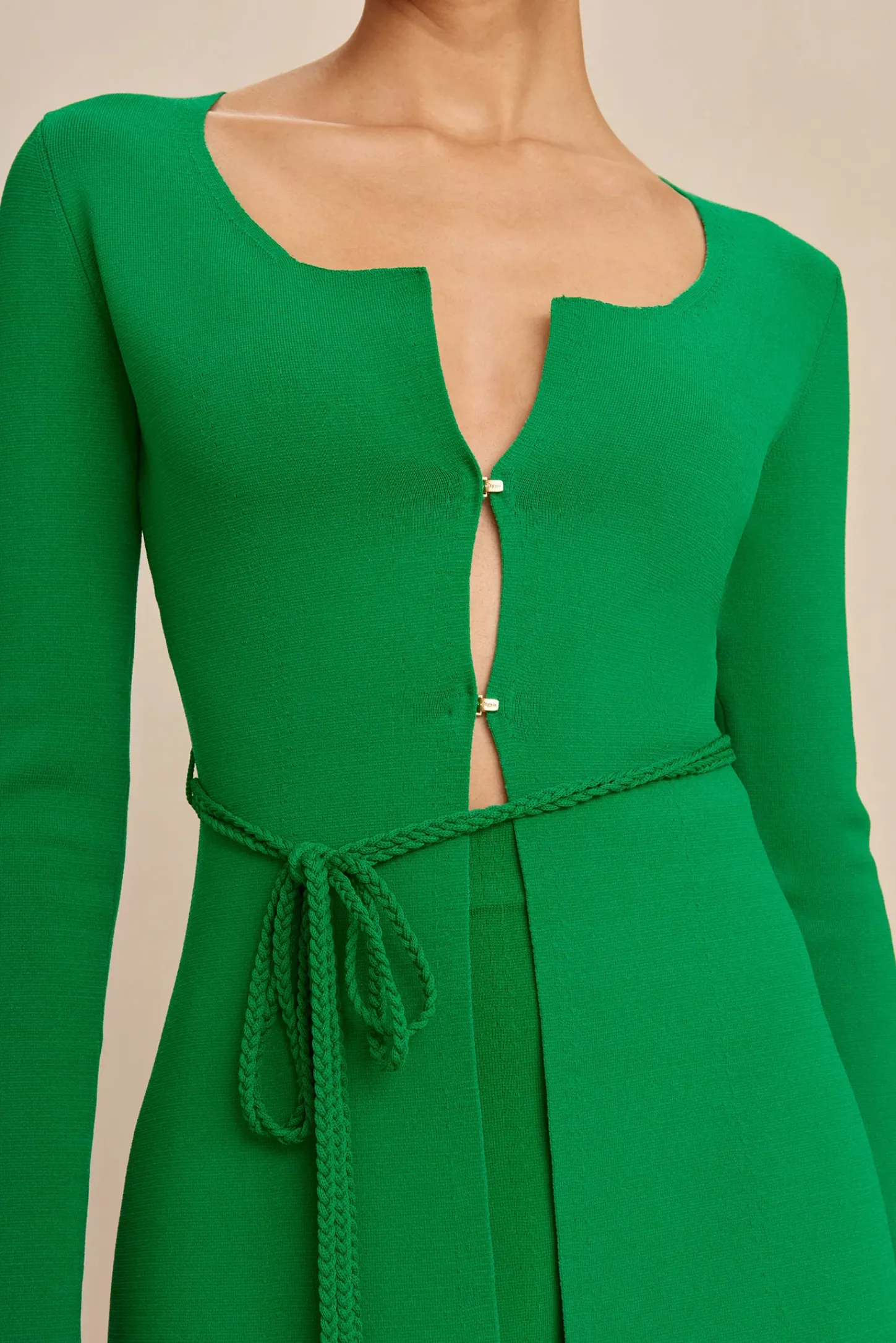 – Gold-toned, brushed-brass hook-and-eye closure