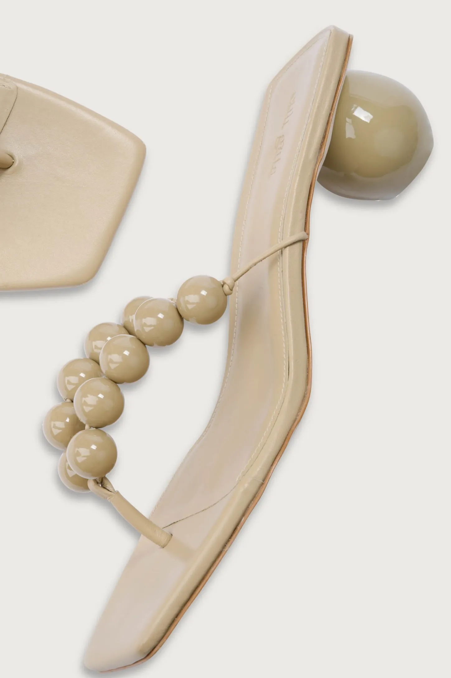 Ansel is a sculpturally influenced sandal with eye-catching details. Designed with a sphere motif featuring neutral-hued ball details on both the strap and heel. Artfully connected on a thin leather strap, the spheres sit comfortably on the foot while also keeping you snugly in place. Balanced on a coordinating spherical heel, this 2″ heel can be worn anywhere and everywhere.