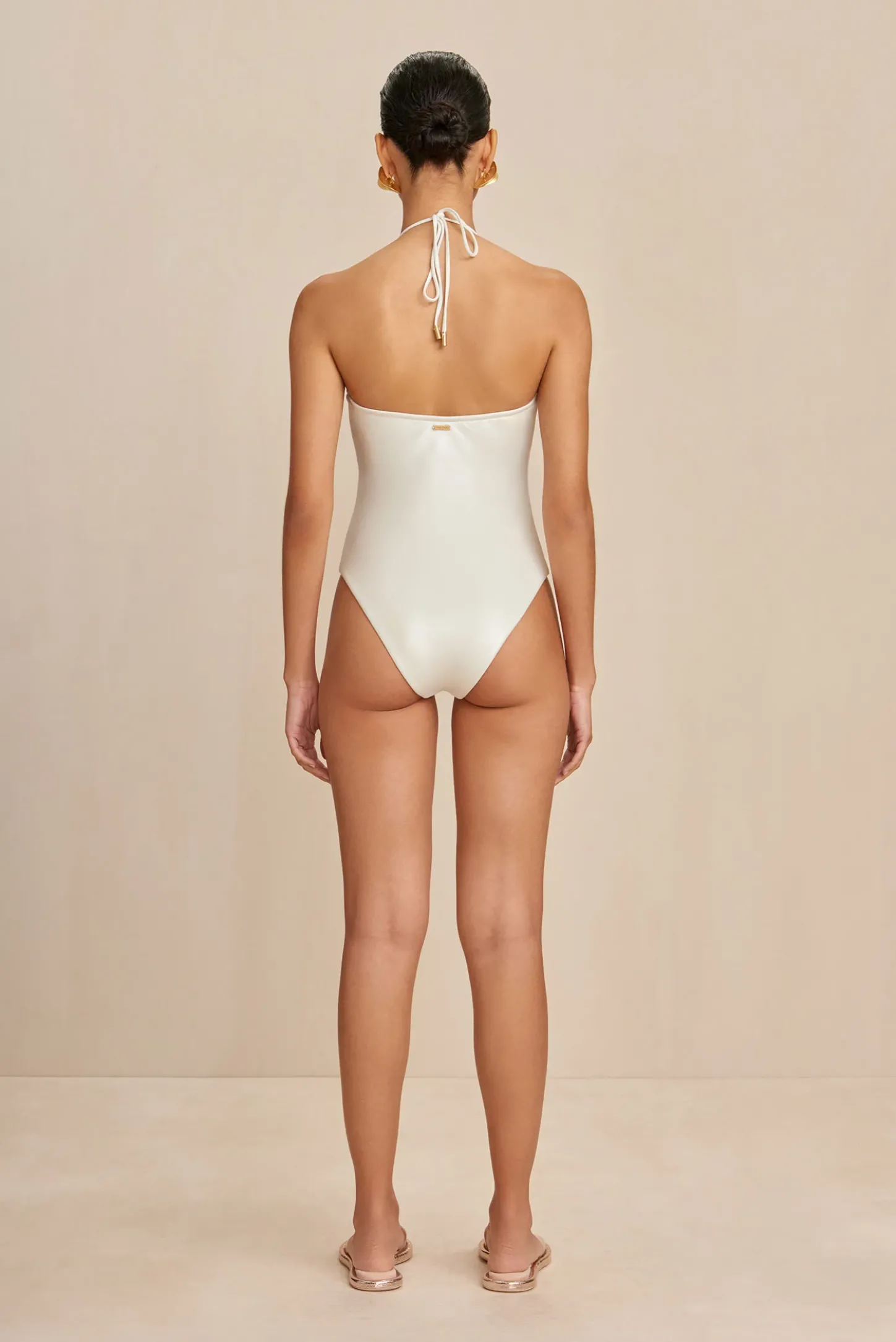 – Ties behind the neck with brass cord end caps