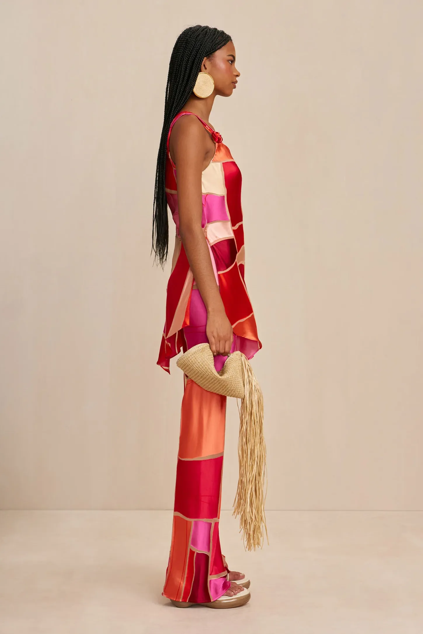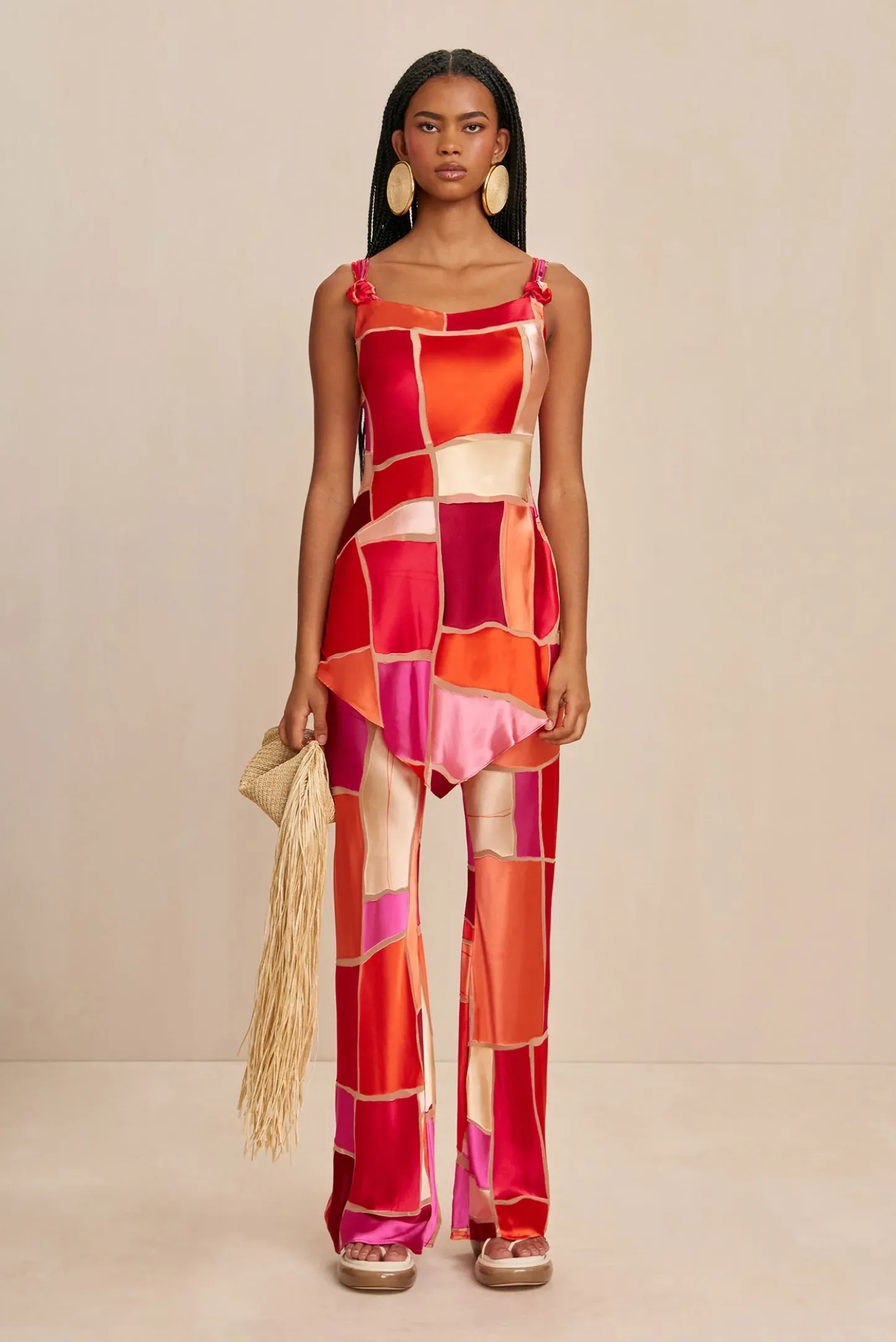 A Lollipop Mosaic printed burnout silk top with a pointed hem and knotting details at the shoulder straps.