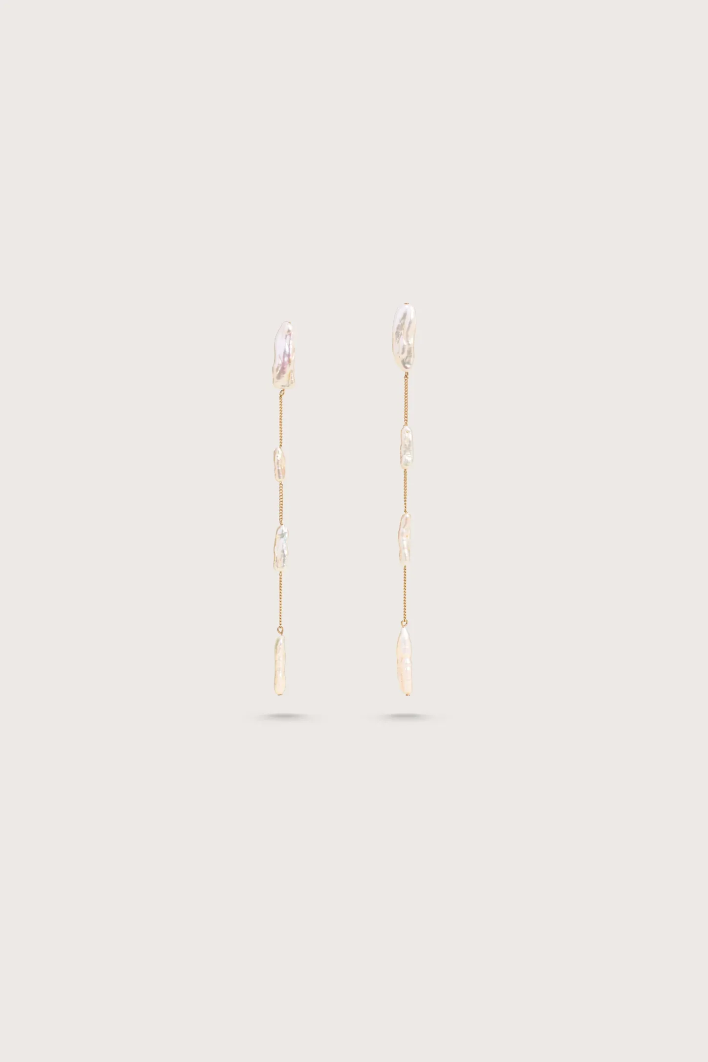 A delicate statement earring designed with geometric shaped natural Keshi pearls.